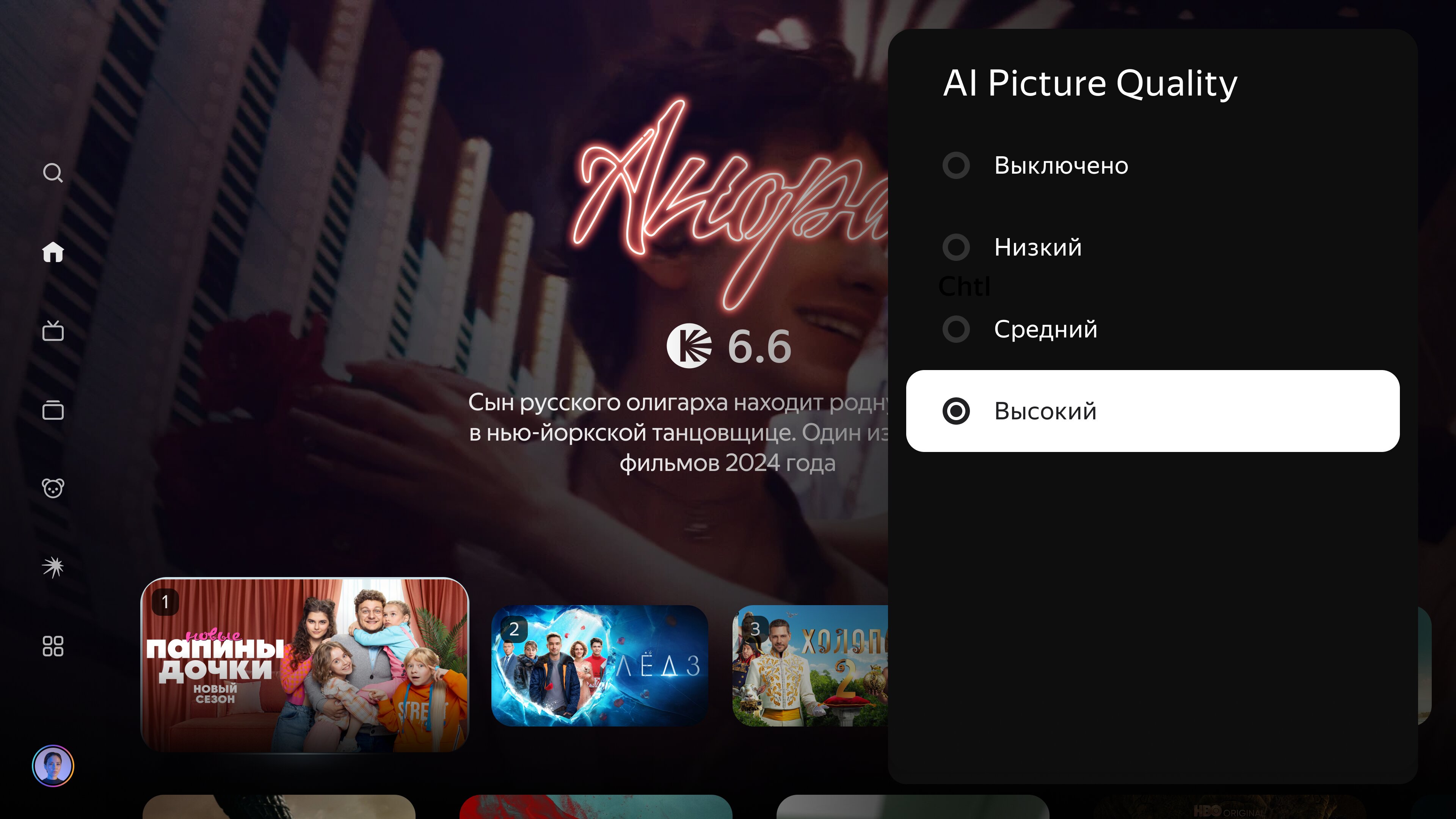 AI Picture Quality — это технология оптимизации изображения с помощью искусственного интеллекта. Нейросеть анализирует, что происходит на экране, и автоматически меняет настройки: улучшает цветопередачу, яркость, контрастность и детализацию. В итоге лица людей выглядят естественнее, краски природы — насыщеннее, а детали архитектуры — точнее. AI Picture Quality доступна для любых фильмов, сериалов и роликов, которые не защищены от копирования. Технологию также внедрили в ТВ Станции Про и ТВ Станции первого поколения.