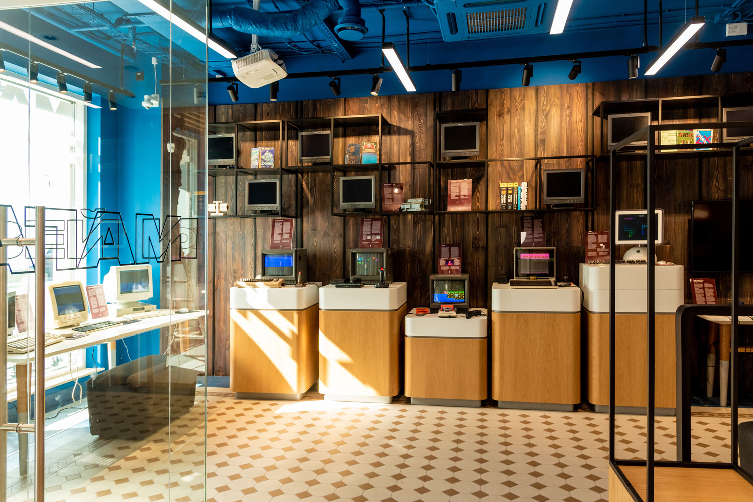 В музейной части представлена экспозиция старой техники. Гости увидят компьютеры Amiga, Сommodore 64, iMac G3 и ZX Spectrum, а также знакомые с детства приставки Dendy, Sega Mega Drive и PlayStation. Музей Яндекса — это не просто экспонаты на полках. Любой техникой можно пользоваться. К каждому компьютеру и приставке прилагается набор игр, в которые можно играть. И всё это совершенно бесплатно.