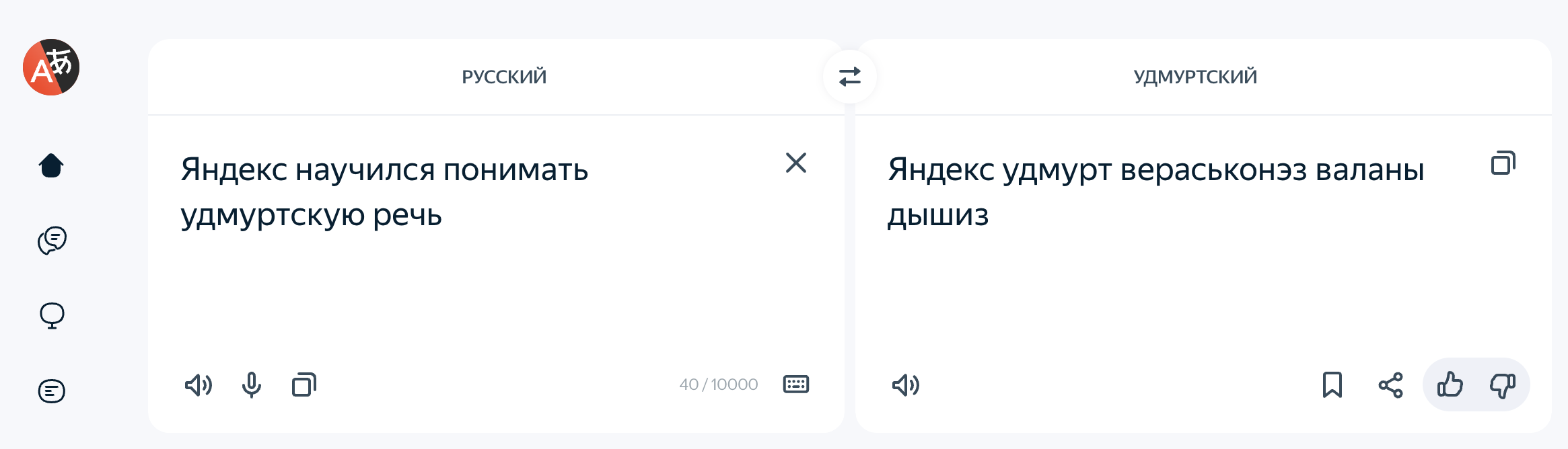 В сервисах Яндекса уже доступно 12 языков народов России. Среди них, помимо удмуртского, чувашского, татарского и башкирского, есть осетинский, язык коми, тувинский, марийский и другие. С помощью нейросетей компания улучшает качество перевода для этих языков, чтобы у людей, которые на них говорят, было больше возможностей для взаимодействия с сервисами компании.