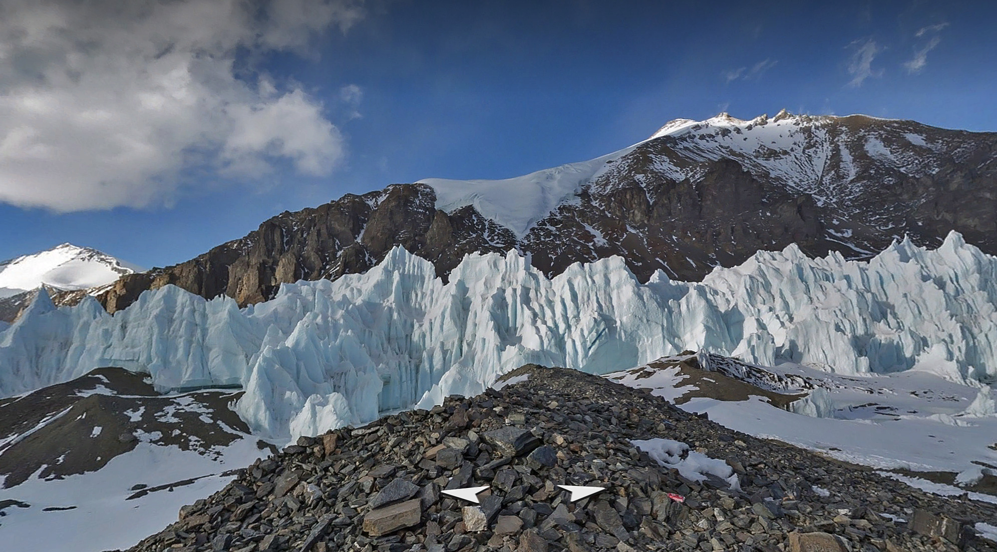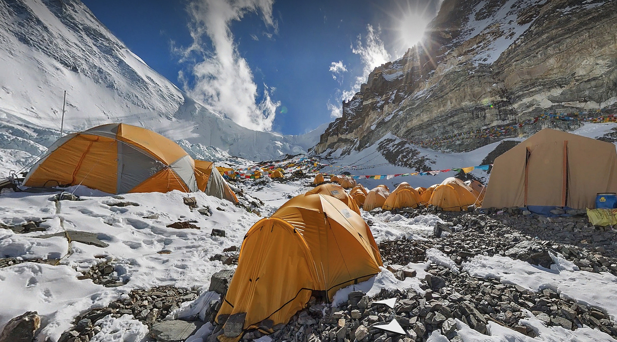 Яндекс добавил на сервис панорамы северного склона Эвереста — это один из самых популярных у альпинистов маршрутов. Съёмки проходили весной этого года. В общей сложности было запечатлено 19 километров пути. Маршрут начинается от базового лагеря на высоте 5100 метров. Следуя за камерой фотографа, пользователи могут пройти вдоль морены, увидеть огромные башни из сыпучей горной породы, начало ледника Восточный Ронгбук, а ещё выше — ледяные пики (сераки). Заснять саму вершину не удалось: началось землетрясение, и экспедицию пришлось свернуть.