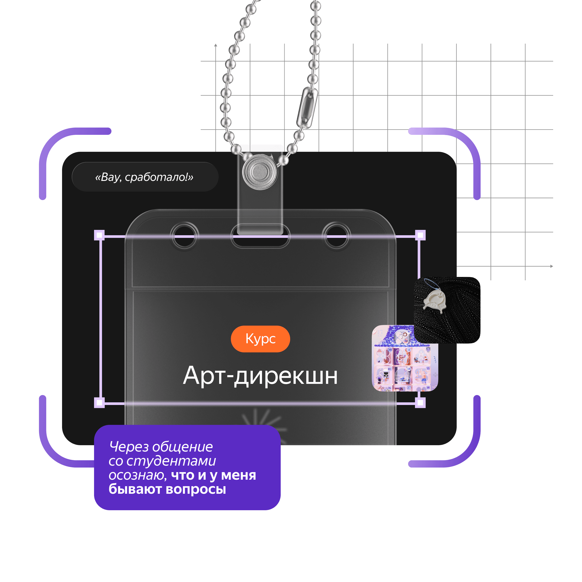 Сам курс «Арт-дирекшен» — для людей, которые хотят обрести больше уверенности в своих решениях и понять, что они двигаются в правильном направлении. Его уникальность в том, что на выходе вроде бы нет материальных результатов, как 3 кейса в портфолио, но студенты получают своеобразную путеводную карту: с кем и как нужно общаться, какого результата добиваться, куда идти, что делать, какие метрики трекать, как расти. И наставник в этом процессе — надёжный помощник.