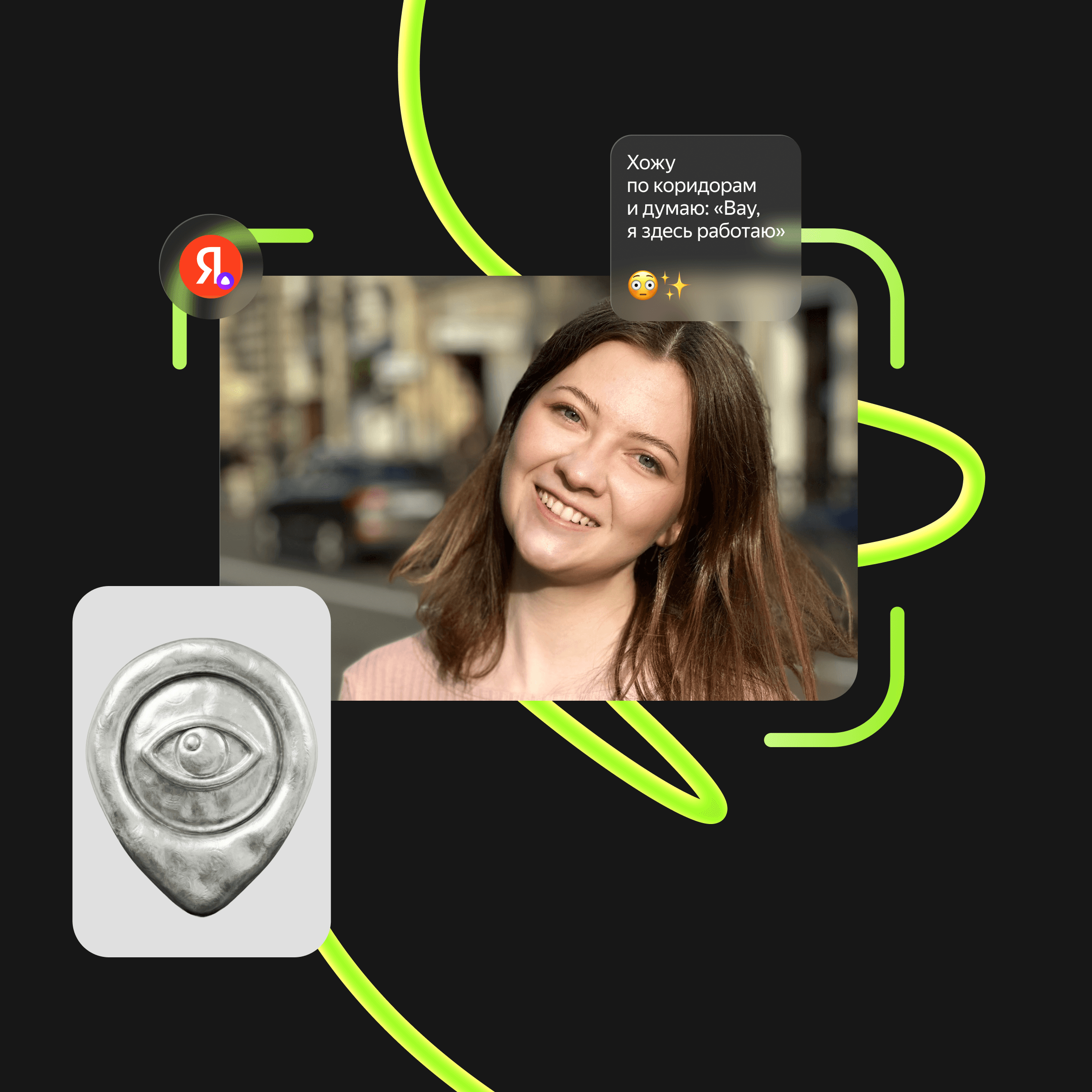 Маленькой я представляла, что это место, где работают только гении и суперсерьёзные специалисты. И вот после девятого класса мне посчастливилось попасть на экскурсию в офис в Екатеринбурге. Запомнилось, что на ресепшене было крупными буквами, как в поисковой строке, написано «Яндекс». И большое впечатление на мой детский мозг произвели хозяюшки и кофепойнт с сырками. Тогда-то во мне и зародилась мечта работать в Яндексе. Но это была именно мечта — что-то нереальное, несбыточное, а не цель, которую можно достичь. Мне всё ещё казалось, что обычные люди, как я, не могут устроиться в Яндекс.