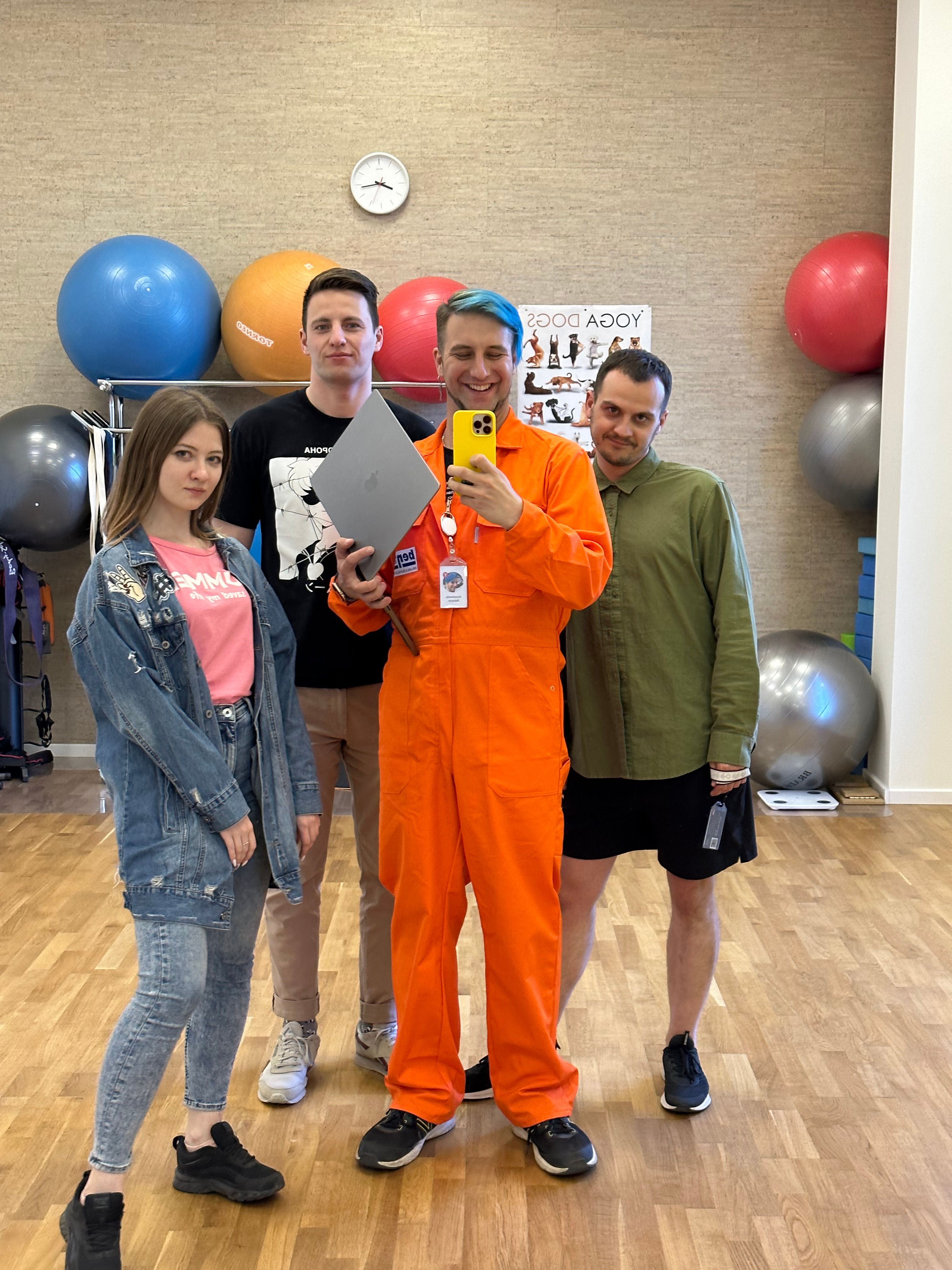 Экскурсии проходят в довольно свободном формате. Мы встречаемся на пятом этаже в конференц-зале «Смольный», там обычно проходит вводная лекция — например, про стажировки или про разные направления работы. После этого делимся на группы и идём по этажам. За 40–60 минут я показываю офис и рассказываю, как у нас всё устроено — от рабочих пространств и гиперкубов для тестирования до кофепойнтов, столовой, спортзала и игровых комнат.