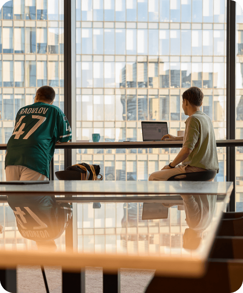 Любимое место в офисе, которое я всегда показываю, — это кофепойнт «Зенит» на четвёртом этаже в корпусе «Бенуа». Он классно стилизован тематически, я, как фанатка «Зенита», могу точно сказать, что тут чувствуется атмосфера команды.