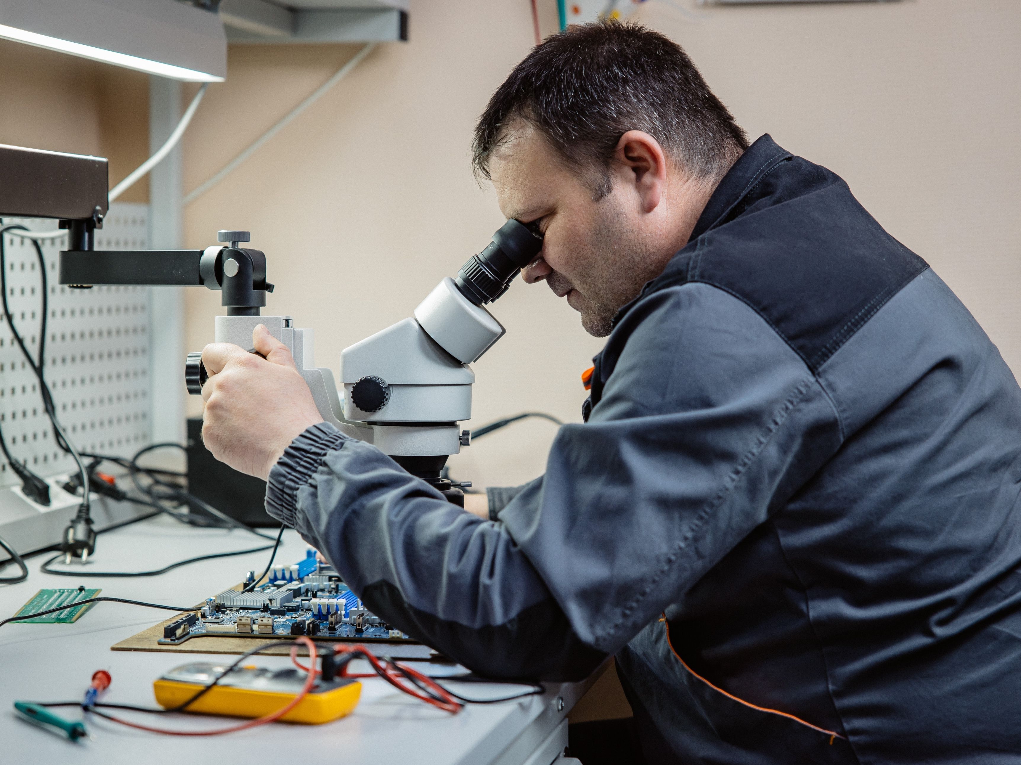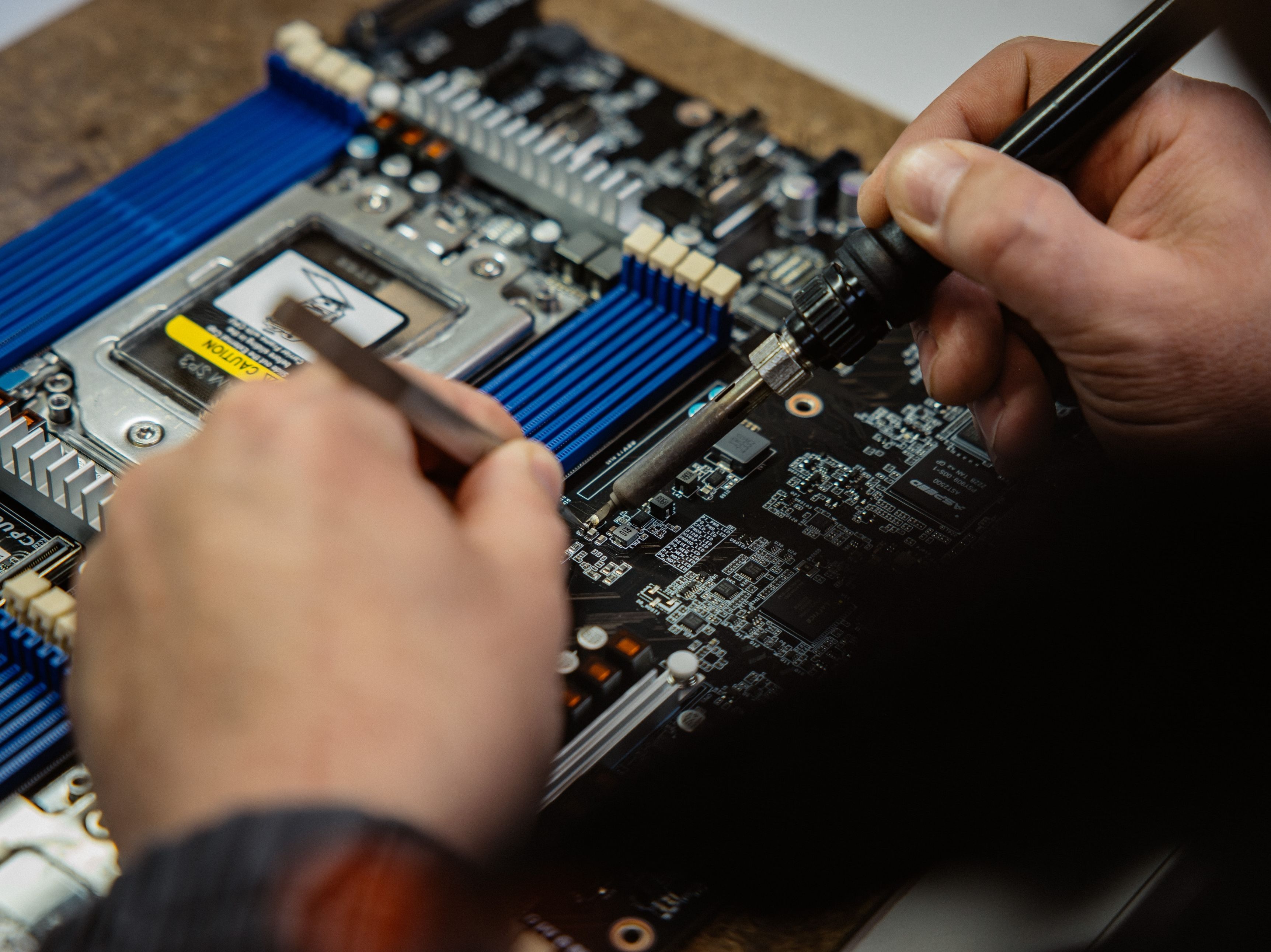 Отдельно есть ребята, которые занимаются пайкой поверхностных компонентов. Они могут паять детали меньше миллиметра в длину. Это «пыль», которую видно только на белой поверхности. Я называю их некромантами, потому что они воскрешают умершие серверы
