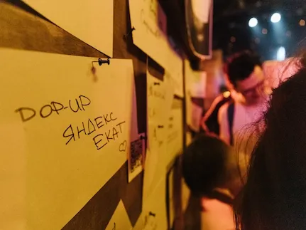 А Аля, коллега из моей команды, обратилась за помощью к Андрею Себранту — культовому человеку в истории Яндекса. Мы делали Pop Up Party в Екатеринбурге в стиле Яндекса 90-х с олдскульным антуражем, и нужны были инсайты, чтобы вечеринка прошла более достоверно. Аля решила, что Андрей сможет нам помочь, потому что пришёл в компанию в начале 2000-х. Он откликнулся и подсказал несколько идей.